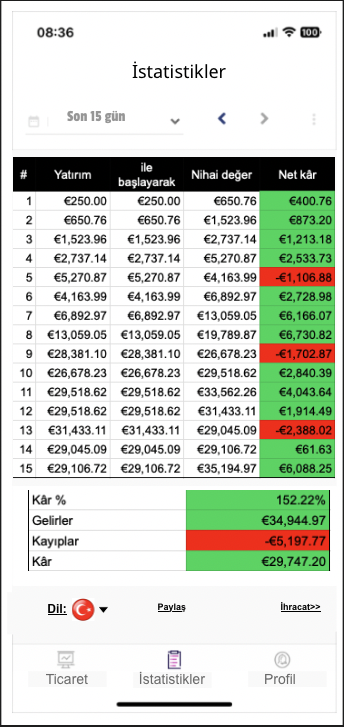 örneğin 9000 TRY, hesabınıza yatırıyorsunuz. Ardından uygulama, kar